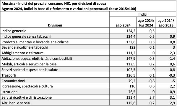 L’impianto dell’indagine sui prezzi al consumo, basato sull’utilizzo di una pluralità di canali per l’acquisizione dei dati, ha consentito di ridurre gli effetti negativi dell’elevato numero di mancate rilevazioni sulla qualità delle misurazioni della dinamica dei prezzi al consumo. Come ricordato nella nota metodologica dell’Istat, gli indici ai diversi livelli di aggregazione, sia nazionali che locali, che hanno avuto una quota di imputazioni superiore al 50% (in termini di prezzi mancanti e/o di peso), sono segnalati mediante l’utilizzo del flag “i” (dato imputato). Nella città di Messina nel mese di agosto 2024 si é registrato un incremento tendenziale dell’1% e congiunturale dello 0,5% dell’indice dei prezzi al consumo. Crescono tendenzialmente rispetto all’anno precedente prodotti alimentari e bevande analcoliche (+0,8%), bevande alcoliche e tabacchi (3%), abbigliamento e calzature (2,3%), mobili, articoli e servizi per la casa (+0,6%), servizi sanitari e spese per la salute (+0,8%), trasporti (+1,4%), ricreazione, spettacoli e cultura (+2,2%), istruzione (+0,9%), servizi ricettivi e ristorazione (+3,1%) e altri beni e servizi (+2,9%). Decrescono tendenzialmente rispetto all’anno precedente abitazione, acqua, elettricità e combustibili (-1,4%), trasporti (-0,3%) e comunicazioni (-5%). E’ quanto emerso nel corso della riunione della commissione comunale di controllo prezzi, presieduta dall’assessore con delega ai Servizi al cittadino Massimiliano Minutoli.