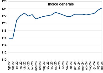 Servizi di trasporto: Nei trasporti si rileva un aumento generalizzato dei prezzi a causa del picco delle vacanze estive. Nel trasporto aereo l’aumento maggiore si registra nei voli europei (+19,4%; -5,8% il tendenziale) seguiti da quelli nazionali (+14,0%; -5,2% il tendenziale) e da quelli intercontinentali (+12,6%; -10,0% il tendenziale). All’aumento dei voli europei e nazionali contribuiscono entrambi i tipi di vettore, tradizionale e low cost, con tassi più ampi per quelli low cost soprattutto nei voli nazionali. Per quanto riguarda i voli intercontinentali, l’aumento ha interessato tutte le direttrici di traffico, con variazioni più ampie per le rotte verso i paesi asiatici. Si rileva anche un aumento dei prezzi del trasporto marittimo (+33,8%; -1,1% il tendenziale), che è più ampio nelle destinazioni verso l’interno rispetto a quelle verso l’estero. L’aumento di prezzo delle destinazioni interne è dovuto esclusivamente alle destinazioni verso le isole maggiori. Si registra infine un aumento nei trasporti ferroviari nazionali (+1,2%; +6,2 il tendenziale), a causa della minore disponibilità di offerte commerciali per il servizio intercity notte.
