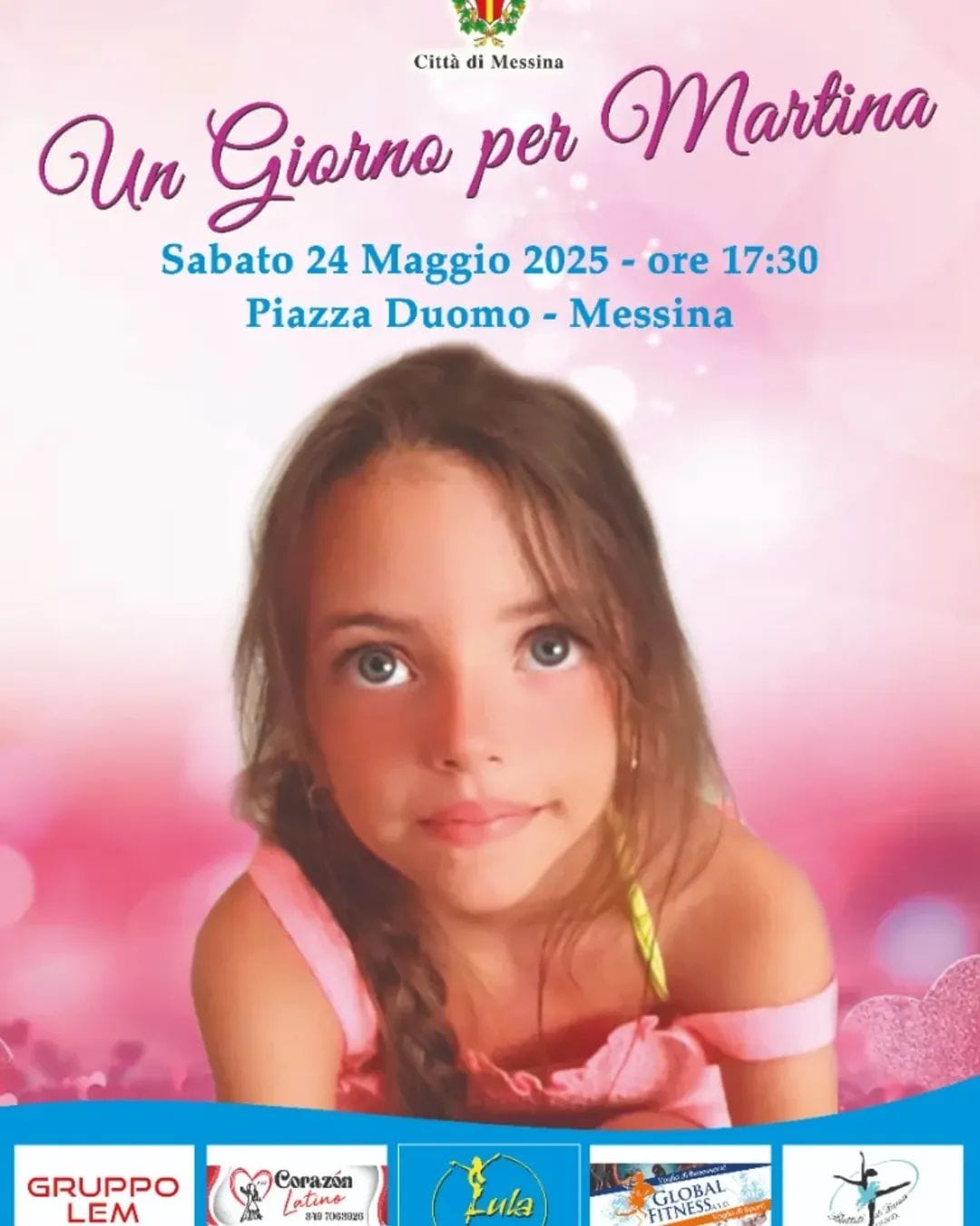 Sabato 24 maggio, alle ore 17.30, a piazza Duomo, si svolgerà "Un Giorno per Martina", evento organizzato in memoria della piccola Martina Merulla, la bambina messinese di 7 anni morta il 23 agosto scorso in un incidente sull’autostrada A2, nel Salernitano.