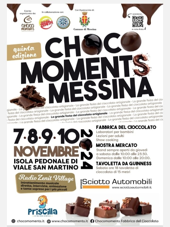 L’evento, patrocinato dal Comune di Messina, organizzato da Chocomoments, società leader per la diffusione della lavorazione live del cioccolato nelle maggiori piazze italiane, in collaborazione con Radio Zenith e Blue Sea in Sicily e con il supporto dell’Amministrazione comunale, è caratterizzato da un ricco programma di appuntamenti ideati per coinvolgere il pubblico di ogni età.