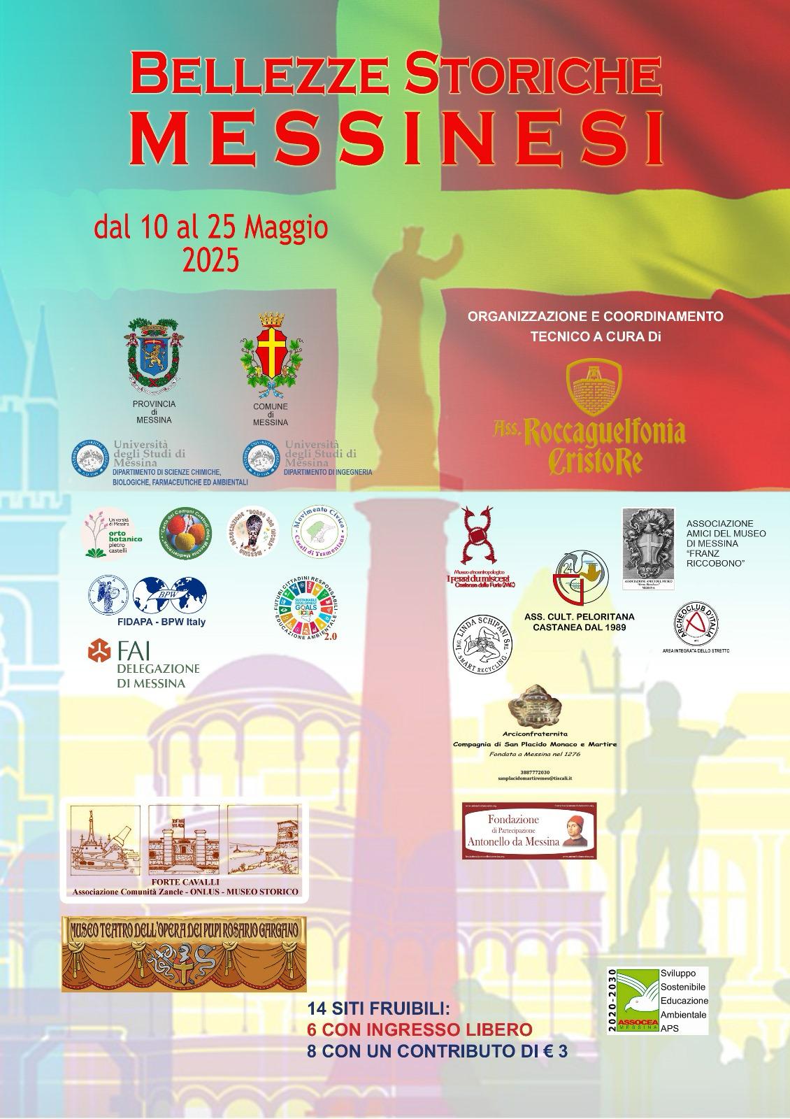 L’iniziativa, organizzata dall'Associazione Roccaguelfonia Cristo Re, con il patrocinio del Comune di Messina, della Città Metropolitana di Messina, si terrà da sabato 10 a domenica 25 maggio e consiste nel terzo appuntamento culturale, facendo scoprire alla cittadinanza messinese e non solo le sue origini tramite l’apertura di quattordici strutture storico-artistiche.