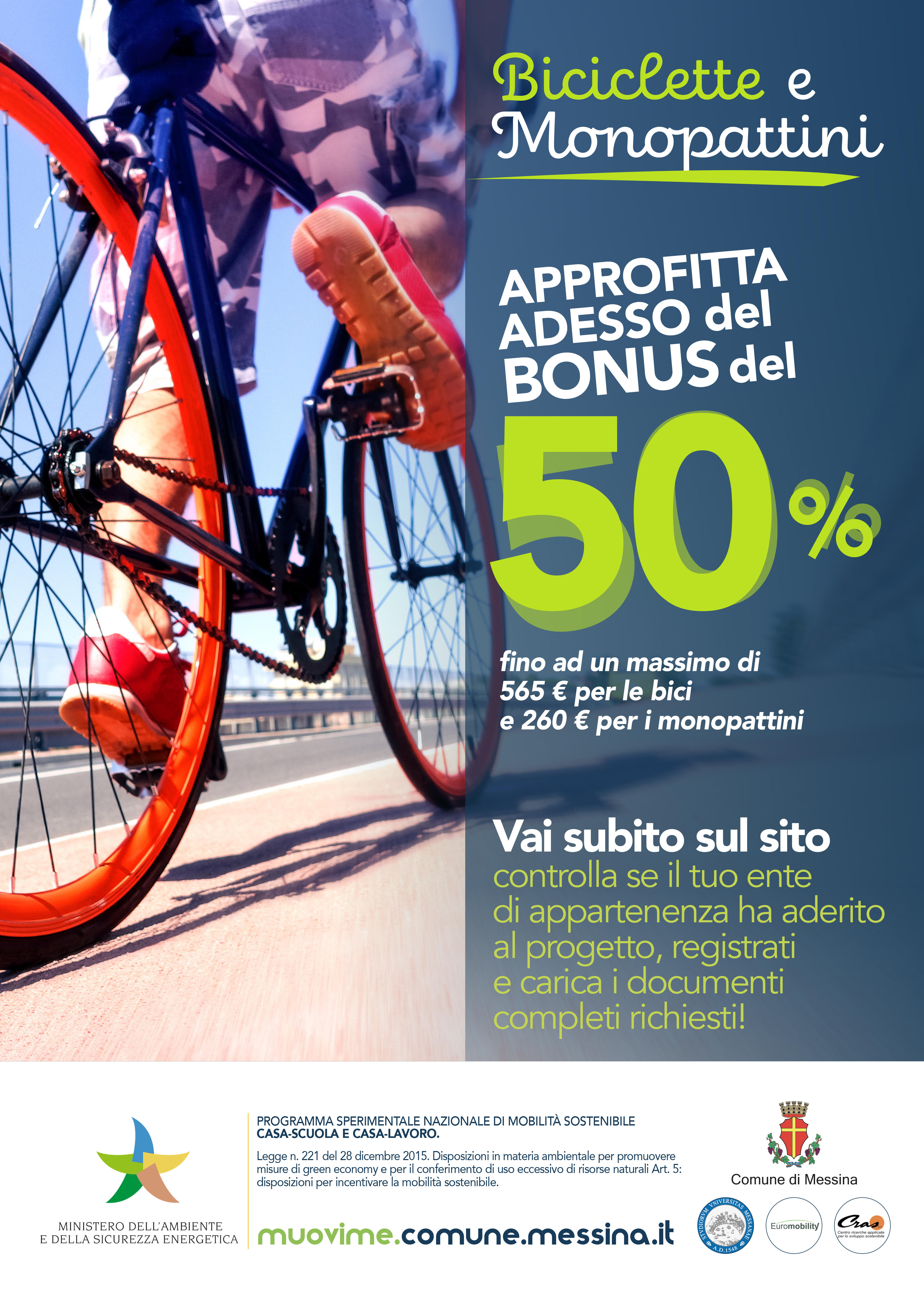 Accedendo al sito https://muovime.comune.messina.it nella sezione "documenti utili", scaricando il file avviso per assegnazione incentivi, puoi verificare le modalità di accesso e le caratteristiche delle biciclette per le quali potrai ricevere il bonus.