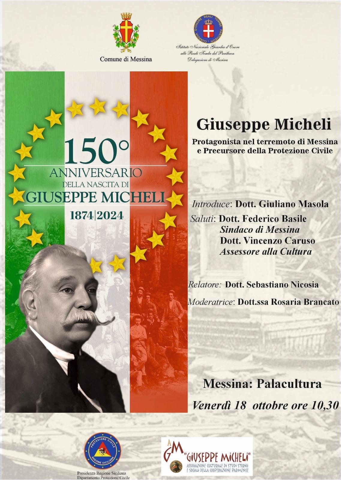 Venerdi 18 ottobre, alle ore 10.30, al Palacultura “Antonello”, la delegazione di Messina dell'Istituto nazionale Guardie d'Onore alle Reali Tombe del Pantheon, in compartecipazione al Comune di Messina, organizza un convegno dal titolo “Giuseppe Micheli: protagonista nel terremoto di Messina e precursore della Protezione Civile”. Durante l'evento, alla presenza del sindaco Federico Basile e dell'assessore alle Politiche culturali Enzo Caruso, verrà descritta una breve biografia del deputato parmense e come, dopo il terremoto del 28 dicembre 1908, raggiunse Messina portando, tra i primi, soccorso alla popolazione colpita dal catastrofico sisma che rase al suolo Messina e Reggio Calabria. Grazie ad un contributo della Cassa di Risparmio di Parma, di cui era consigliere, realizzò rapidamente un villaggio di baracche destinato ai superstiti ed ai servizi amministrativi provvisori (che la popolazione battezzò “Michelopoli”) e organizzò una serie di servizi, dal recapito della corrispondenza al rilascio dei permessi per gli scavi.