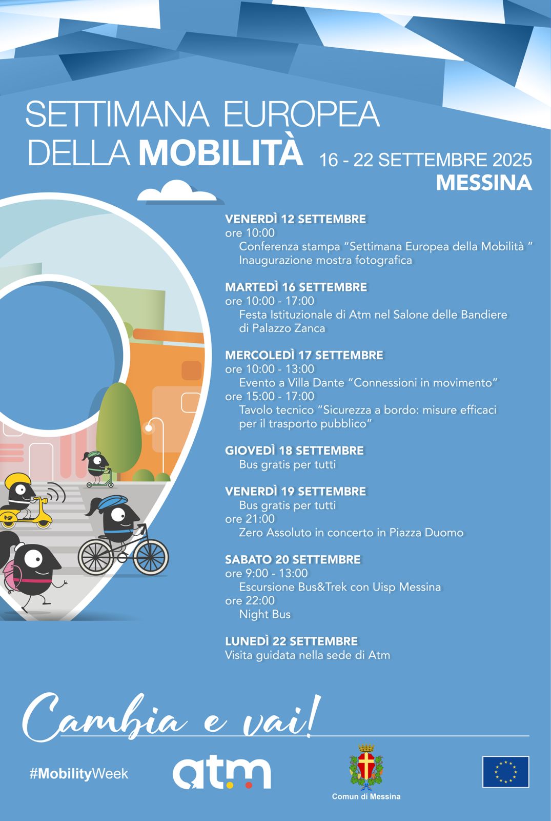 La Settimana europea della Mobilità 2025 è pronta a prendere il via. Dal 16 al 22 settembre, in tutta Europa, saranno organizzate iniziative che avranno come filo conduttore lo slogan “Mobilità per tutti” e dovranno essere finalizzate ad incentivare la mobilità sostenibile e favorire l’accessibilità al servizio di traporto pubblico. La città di Messina sarà protagonista, grazie al ricco programma ideato da ATM, in collaborazione con il Comune di Messina. L’intero cartellone è stato illustrato stamattina presso la sede di Atm dalla Presidente di ATM Carla Grillo, alla presenza del Sindaco Federico Basile e del Vicesindaco Salvatore Mondello.