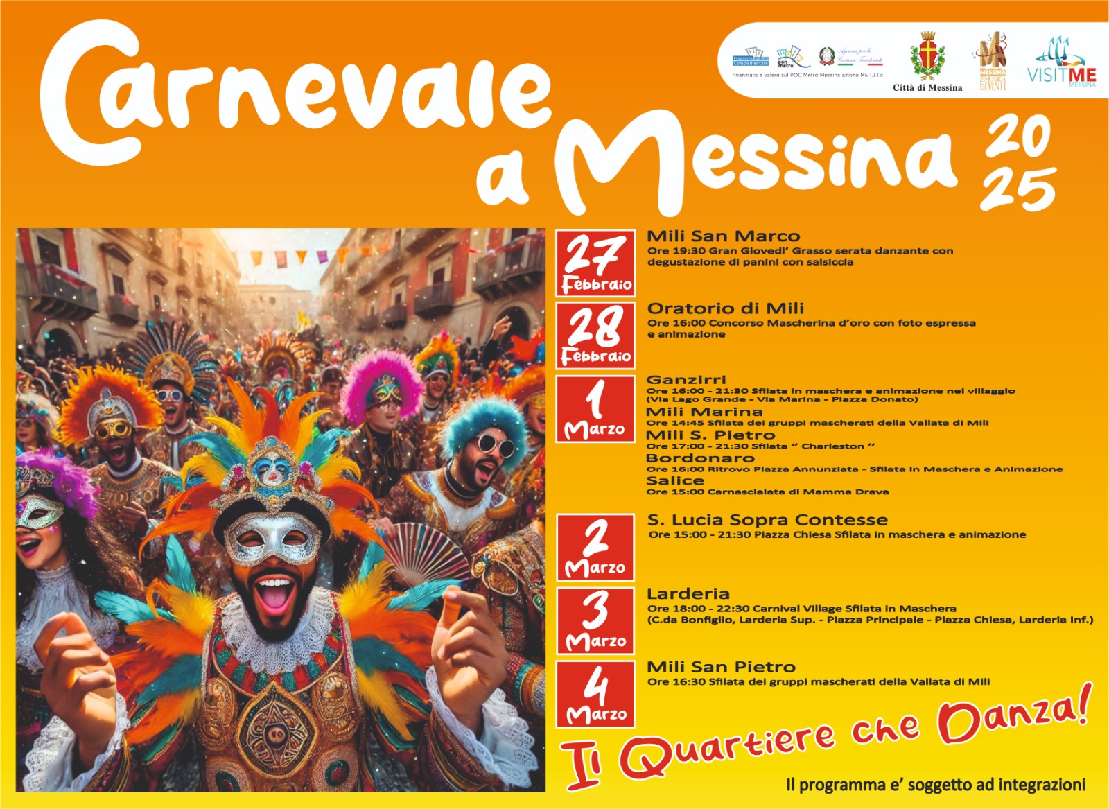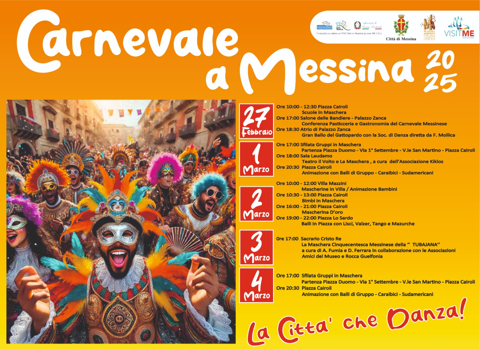 "Il calendario degli eventi coordinati dall’Amministrazione comunale per l’edizione 2025 del Carnevale messinese – spiegano gli assessori Liana Cannata ed Enzo Caruso – prevede una serie di eventi che, unitamente ai classici appuntamenti tipici del Carnevale, si caratterizzano per il ballo in maschera nelle piazze cittadine e nei villaggi, con l’intento di dare un'identità, in modo unico ed originale, al Carnevale della nostra città rispetto a quello degli altri centri della Sicilia. 'La Città che Danza' è lo slogan che farà da trade union dell'intero programma".