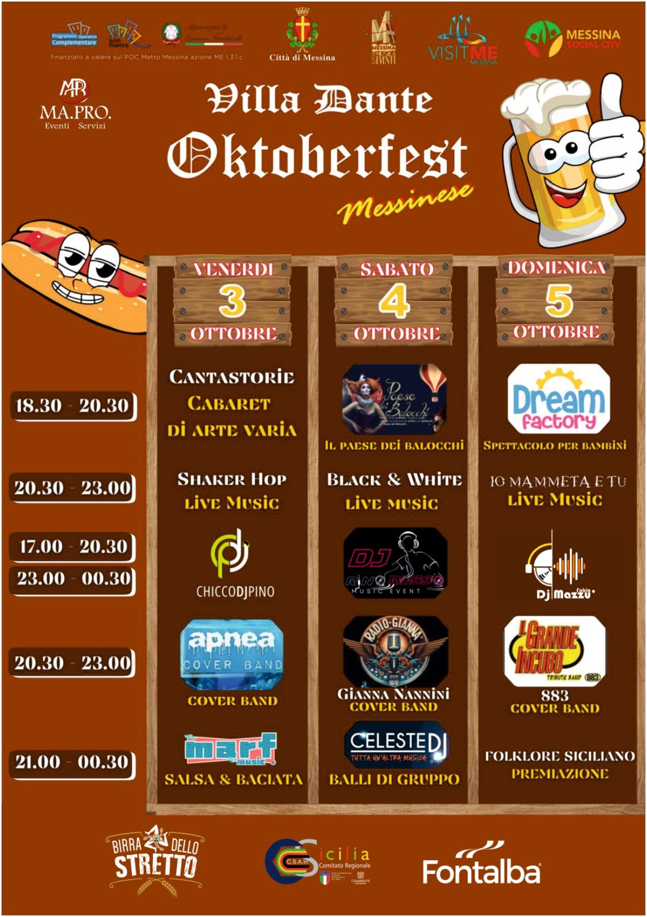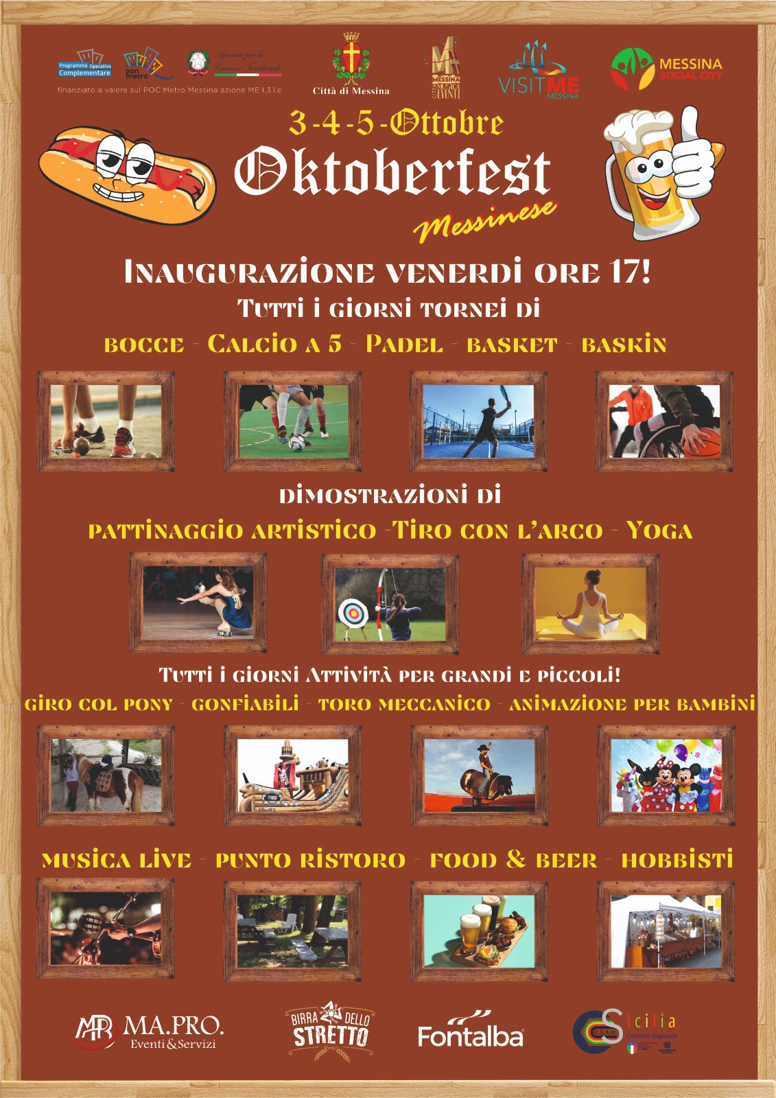 L'evento, organizzato dalla Ma Pro Eventi e Servizi, sostenuto dall'Amministrazione comunale e dall'Azienda Messina Social City, e in collaborazione con Csain Sicilia, prevede attività sportive, animazione e spettacoli per bambini, area gonfiabili, hobbisti, live music, 15 casette food, beer con degustazioni dei prodotti in linea con l’Oktoberfest ed un punto ristoro.