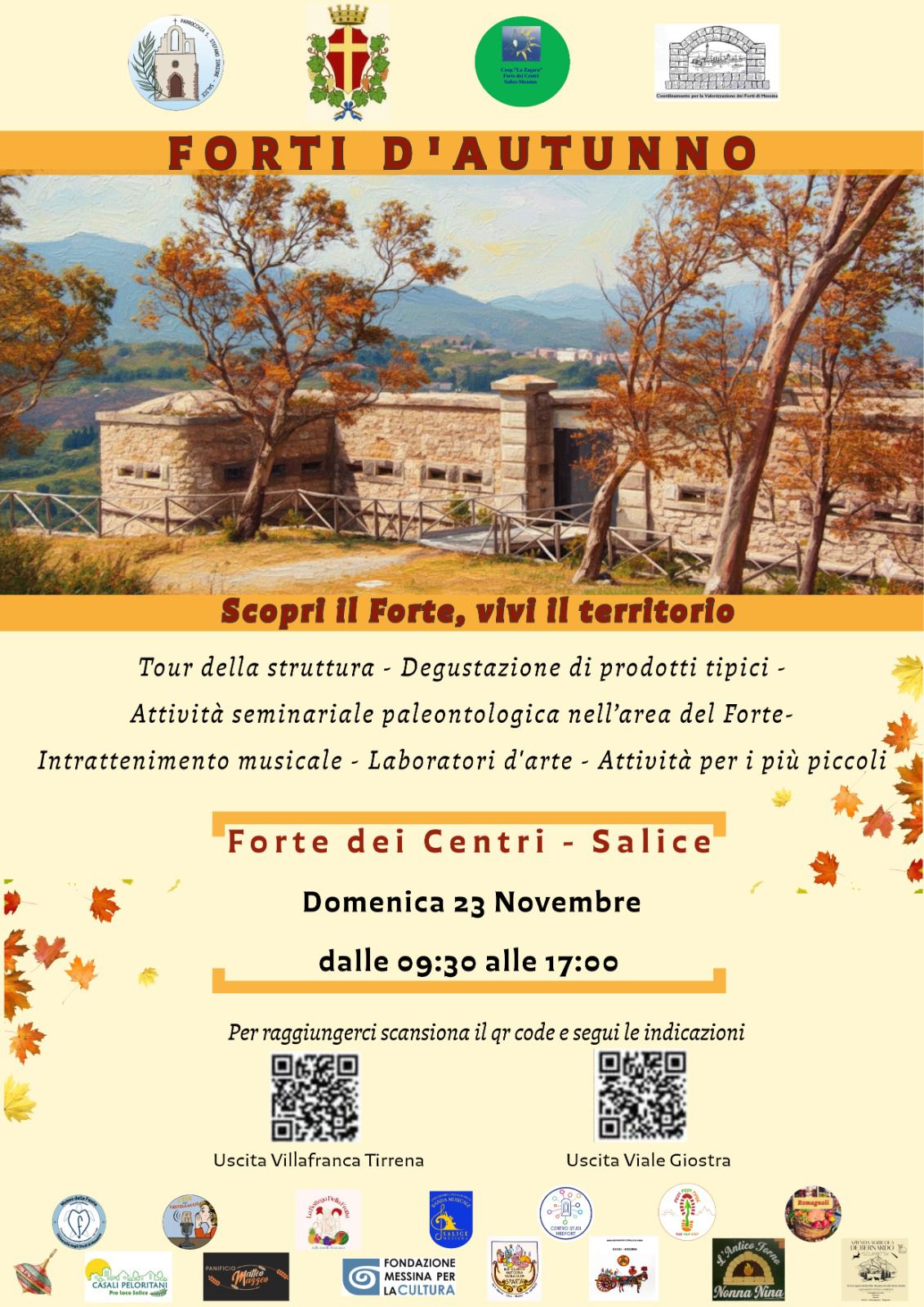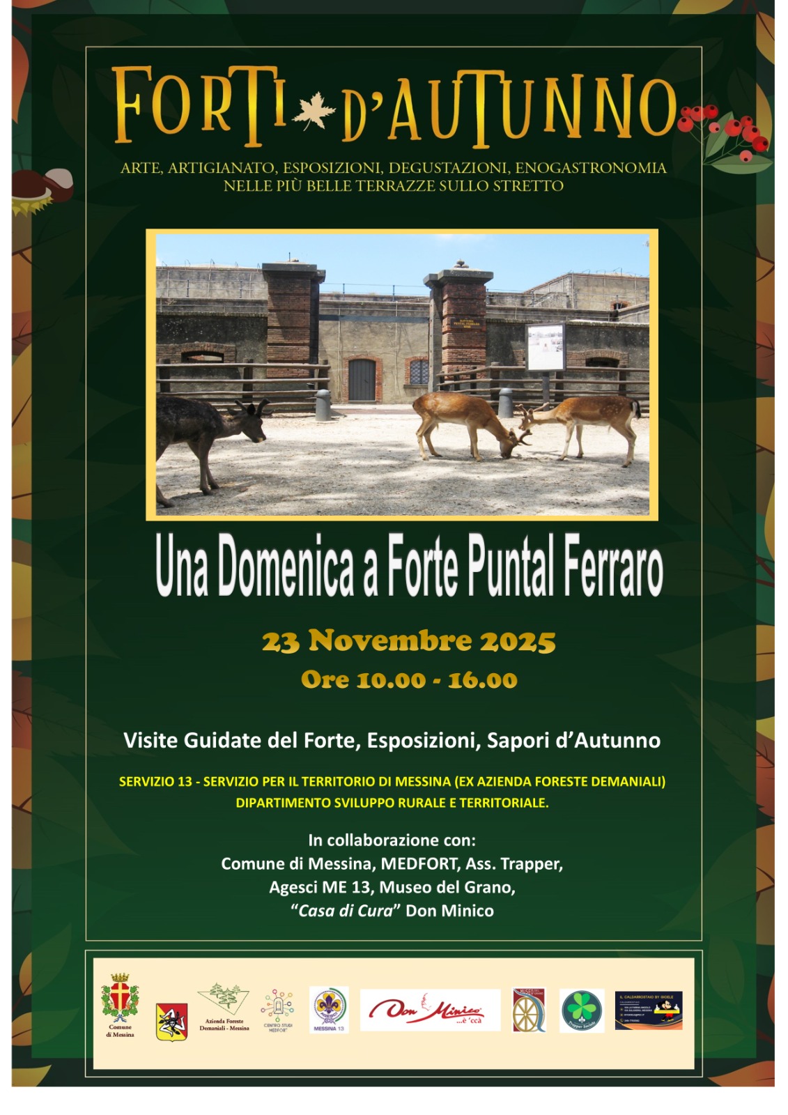 L'evento "Forti d'Autunno", che consiste nell'apertura dei Forti attraverso mostre, animazioni, visite guidate, esposizioni e degustazioni, è promosso dall'Amministrazione comunale - Assessorato alla Valorizzazione del Patrimonio Fortificato, con il supporto delle società Partecipate e in collaborazione con il Centro Studi MEDFORT, l’Azienda Foreste Demaniali di Messina, custode del Forte Puntal Ferraro, e le Associazioni referenti dei Forti Petrazza, Cavalli, San Jachiddu, Serra la Croce e Monte dei Centri.